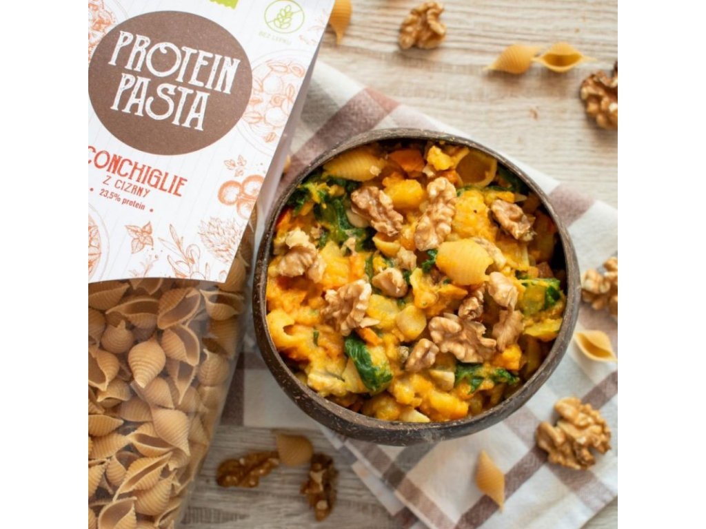Představujeme vám naši kolekci proteinových těstovin s vysokým obsahem rostlinných bílkovin. Vyrobeny jsou výhradně z luštěnin! Neobsahují sóju a jsou přirozeně bezlepkové. Díky tomu jsou oblíbené u veganů, sportovců i lidí trpící nesnášenlivostí na lepek. Vybírat můžete ze čtyř různých druhů těstovin, každý zpracován z jiného typu luštěnin (cizrna, hrách, červená čočka a mix luštěnin). Díky zdlouhavému procesu přípravy luštěniny často v jídelníčku chybí. Těstoviny z luštěnin jsou tak ideálním řešením. Skvěle chutnají, snadno se připravují a vy můžete mít příjem bílkovin jednoduše pod kontrolou.